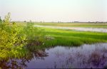 Reggel a városi TV is kivonult, hogy riportot csináljanak velünk. Persze nem csak a biciklizésről, hanem - amatőrcsillagászok lévén - a néhány hét múlva esedékes teljes napfogyatkozásról is. (Ekkor az egész ország a napfogyatkozás lázában égett...) Ezután vendéglátóink bemutatták nekünk a várost, majd elkisértek túránk első szakaszára, a Kőrös gátján Öcsödön át Szarvasig. Szarvason kellemesen elidőztünk, megnéztük a híres arborétumot és a Kőrös partot, majd a folyó mentén továbbtekertünk Gyomaendrődre, ahol Liziczai László tagtársunk várt ránk. Ő mutatott nekünk egy csodás csendes táborozóhelyet a folyóparton.