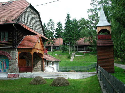 Kaszárnyaudvar fa harangtoronnyal.