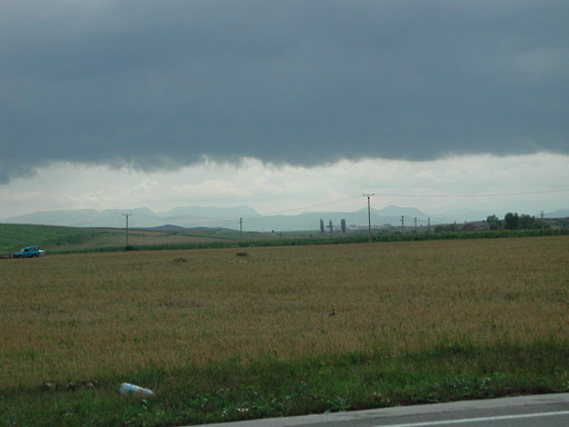 Az esőfelhőzet alatt a Torockói-hegység fickándozó dombjai.