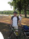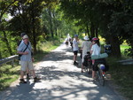 "Helyi erő" lévén, innentől Mojo vette át a vezetést. Mivel a kánikula továbbra is elemében volt, örömmel vettük javaslatát, hogy Dunavecse és Solt után térjünk be hűsölni Kálimajorba, a Kiskun táborok korábbi helyszinére. A hatalmas parkban egy kis árnyékba bújhattunk és kisétálhattunk a közeli dunapartra. Ezután újból rátalálva a 6-os bicikliútra, jónéhány kilométert a folyó mellett gurultunk álomszép környezetben, majd Harta felé vettük az irányt, ahol Mojo közbenjárására, a hétfő ellenére, "Péter Bácsi" (Gottschl Péter) kinyitotta nekünk a helytörténeti gyűjteményt, és egy rendkivül alapos és lelkes előadás keretében elmesélte nekünk a hartai svábság történetét, betelepülésüktől kitelepitésükig, tárgyi kultúrájukat, különállásukat a hazai svábságtól, nyelvük sajátosságait, azt hogy miért beszélik tájszólás nélkül az "irodalmi magyart". Jó hosszúra nyúlt a múzeumlátogatás, de lélekben gazdagabbak lettünk tőle.