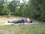Mivel Tepi 50. születésnapja pont ekkorra esett, igy a téren ülve, valóban méltó biciklitúrás társaságban köszönthettük öt fel. A társaság Lilla betanitásában egy rögtönzött dalt is előadott, a lányoknak köszönhetően került torta is, amit - Gabi és Zsolt beszerzésében - egy vadonat új massziv bicikli csomagtartón szolgáltunk fel.