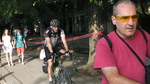 Reggel újból Palics fele indultunk, és megálltunk nézelődni és barackozni a piacon, majd a ludasi tó felé vettük az irányt. Magát a tavat nem sok helyről lehetett látni, de befordulva Ludason megtaláltuk azt a természetvédelmi területet, ahonnan igen. Madarat lestünk, és osztályfőnöki órát tartottunk a falusi iskola udvarán. Nagyon nyugalmas tájon, jó utakon gurultunk tovább Kispiacig, ahol heveregtünk egy kicsit a temető oldalában. Innen már csak egy kis tekeréssel Kishomokon keresztül elértük a hömpölygő Tiszát, annak partján haladva pedig Magyarkanizsát. Itt is van jellegzetes városháza, de a legfőbb látnivaló a Költő és a Festő szobra. Innen tovább dél felé vettük az irányt. Közben egy hirtelen zápor ütött rajtunk, amit a pont ott talált út menti kihalt és romos Csalogány presszóban vészeltünk át. Sajnáltuk a lemeradtakat, hogy mennyire megáznak, de pár perc múlva teljesen szárazon ők is megérkeztek. Olyan pici volt a zápor, hogy ők nem is tudtak róla.