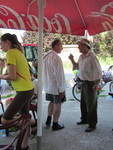 Reggelre ébredve tiszai fürdőzéssel kezdtük a napot, majd lebontottuk sátrainkat. Tepiék autóstól eltávoztak Ómoravicára, családi nyomokat keresni, mi pedig immár a Tiszántúlon folytattuk tovább. Csókán betértünk egy gazdaboltba, ahol elbeszélgettünk a nagyon kedves magyar boltossal, aki hálás volt, hogy erre a vidékre is elvetődnek túrázók. Majd hamarosan Törökkanizsa következett, ahol kitekertünk a folyópartra, és elénekeltük az itt igazán aktuális Hej halászok dalt. Miközben a parkban megcsodáltuk a szocialista emlékművet, megkérdeztünk egy épp arra járó embert, mit is ábrázol. Vele már csak tört szerbül és tört angolul tudtunk beszélgetni, így végülis nem tudtuk meg, de azt viszont igen, hogy ő rapper, és elő is adta egy rövid szerzeményét.