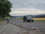 A leghoszzabb napunkra ébredtünk, reggel a ház előtt vadnyulak üdvözöltek. Szerencsére nem esett még, igyekeztünk korán indulni, de bemelegítésképp még egy jó kis bringaszereléssel kezdtük - mérsékelt sikerrel. Ezután már az indulás gördülékenyen ment, mivel csak le kellett gördülnünk vissza a hegy lábához, megállván az előző nap talált finom vadalmafánál. A Kis Kárpátok keleti oldalában, szép tájakon, falvakon át folytattuk az utat Szomolányig, ahol megebédeltünk és megkofoláztunk, majd hamarosan elértük a hegyeket átszelő útat. Ez a Nagyszombat - Brno - Prága főút, förtelmes kamionforgalommal, keskeny kanyarokkal. Csöpögő esőben nem volt éppen kellemes feltekerni így a hágóra, de megúsztuk, és némi gurulás után már át is értünk a hegyeken Jablánc városába. Bár még az egykori Magyarország területén voltunk - amúgy az egykori habánok földjén - de elhagytuk a Kárpát medencét.
