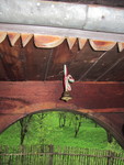 Az idő kezdett rendbejönni, végre útrakeltünk, és visszagurultunk Kalotaszentkirályba. Ez a falu elvileg a kalotaszegi turizmus központja - bár ehhez képest nem volt benne nagy élet. Temploma valaha épp oly szép volt mint a Valkói, kívülről most is az, falán szép napórával, de belsejét sajnos a mócok a történelem viharaiban felégették. Tiszteletünket tettük a Kalota-parti óvodánál, az emléktáblánál, ahol Ady e versét írta: