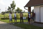 A Kőrös-Maros Nemzeti Parkhoz tartozó impozáns központ őshonos állatok tartásával és a hazai túzok populáció védelmével és szaporításával foglalkozik - mindezt a nagyközönség számára is láthatóan. Tettünk egy kis sétát a korábbi esők miatt vízzel borított közeli réten, megnéztük a három bekerített "bemutató-túzokot", illetve a bivalyokat, szürkemarhákat, rakcajuhokat. A terep kiválóan alkalmas táborozásra, de muszáj volt sátrat vernünk a végtelen számú, ereje teljében szívó szúnyog miatt. Miköben a tábortűznél az elázott cipőinket szárítgattuk, az égen az üstököst binoklizgattuk. Este és éjszaka fantasztikus polifón békamuzsikát hallgathattunk.