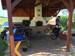 Komádiban egy "minimálhamburgeresnél" kiettük az aznapi készletet, hogy erőt gyűjtsünk a még hátralevő útra. Ez Furtáig elég hosszú volt, majd nemsokára Bakonszeg előtt elértük a Berettyót, aminek gátján kellemes bicikliút vezetett Berettyóújfaluig. A gátat elhagyva, a városba beérve némi káosz ütötte fel fejét a társaságban az étkezést és a folytatást illetően, így végül is kettészakadtunk. A nagyobbik fél részéről a tervezett vendéglőzés elmaradt, míg PZs-ék valahol megtartották, és egy panzióban leltek nyugalomra. A derékhad még 7 km-t tekert a kiszemelt táborhelyig, áthaladva a már kész de még át nem adott M4-es autópálya felett, a szentpéterszegi horgásztó partjához.