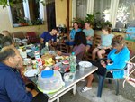 Közben Endre vállalta a biciklik "őrzését". A meleg séta után ebédeltünk egyet a Posta melletti ételbárban és hosszas beszélgetésbe elegyedtünk a régi ismerősökkel. Csak néhány ismert név: Tepi, SPeti, Nyergeske, K.Lilla, Hege felesége. SPeti biciklis km-órája 299 km mutatott.