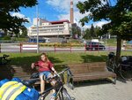 Utolsó, és a legjobb tekerős napunk következett, a terv szerint innen már a végcélig kellett eljutnunk. Trencsényt elhagyva a Vág partján további várak alatt haladtunk el, és találtunk egy hangulatos bringás pihenőt, ahol ettünk-ittunk egy picit. Nemsóig a gáton haladó bicikliúton lehetett tekerni, utána nyugis kis utakon falvakon keresztül. A folyó túlsó, bal partján haladt a forgalmas főút, az itteni part sokkal jobb választás volt. Itt már mindkét oldalon hegyek vettek minket körül, ha nem is a legnagyobbak: nyugat felé Csehországtól elválasztó hegyek, kelet felé a Fátra előnyúlványai. Kora délután érkeztünk Puhóba, ami egy szép fekvésű gyárváros sok ázsiai vendégmunkással. Egy jó kis egyszerű helyen ebédeltünk, majd János javaslatára a víztározót megkerülő úton indultunk tovább. Ez jó ötlet volt, mert két híddal és egy alagúttal átvágva a kanyarokat nemrég megépült az új hipermodern vasútvonal, a másik oldalon a volt régi vasút helyén pedig egy nulla forgalmú út maradt. Megmaradt még az egykori vasútállomás is sínek nélkül. Az előző évben elkészült új vasúti műtárgyak (hidak, alagút) nagyon látványosak voltak, meg is álltunk gyönyörködni bennük. A folyó jobb partján haladva értük el a szintén elég ipari és lakótelepekkel megáldott Vágbesztercét, ahonnan már belátható közelségbe került a cél.