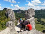 Egy újabb pihenőnap várt ránk, ezt az indokolta, hogy a Szulyó völgy egy ritka szép és egyedülálló természeti vidék, amire érdemes volt egy napot szánnunk. A katlanszerű völgyet félkör alakban különleges geológiai képződmények, csipkés sziklaformációk veszik körül, ezek egyikén, a Rohács hegyen pedig egy várrom magasodik. Ez állítólag Szlovákia legmegközelíthetetlenebb várai közé tartozik, amit mi is meg tudunk erősíteni. Bár nincs magasan, de a szikla tetejére elég izgalmas volt felmászni - már csak azért is, mert sok helyen láncokba kellett kapaszkodni, és az eredetileg lépcsőnek odavitt éles sarkú vaslemezek néhol egymásra voltak halmozva a lejtőn, ahonnan, ha megindulnak, feldarabolják az arra járókat. Szerencsére minket nem daraboltak fel (remélhetőleg másokat sem), így fel tudtunk kapaszkodni a felső várba, ahonnan csodás kilátás nyílt a többi csipkés csúcsra és a völgyben fekvő falura. A vártól tovább haladva végigjártuk a gerincet - ez egy kellemes 4-5 órás túra volt.